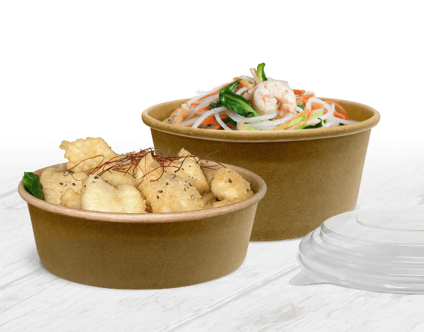 Serve your fast-food items in Castaway Takeaway Bowls! Made from sustainably sourced kraft paperboard, with two secure, matching lid options — these bowls are both functional and strong keeping food secure whilst its stylish design accentuates your food creations and drives impulse purchases. Lids and containers are fully recyclable if separated — making Castaway Takeaway Bowls an ideal ‘to-go’ solution for today’s eco-conscious customers.